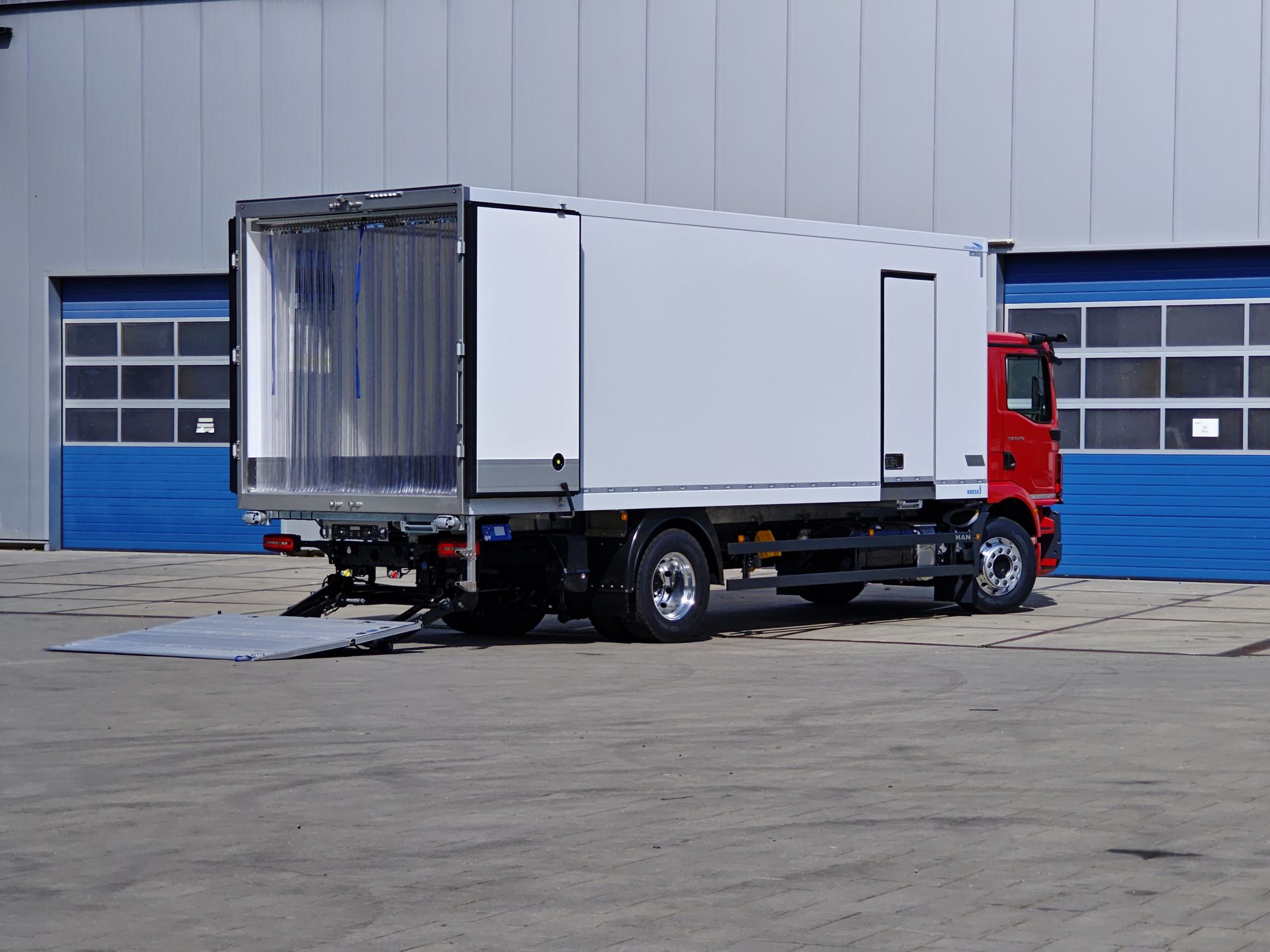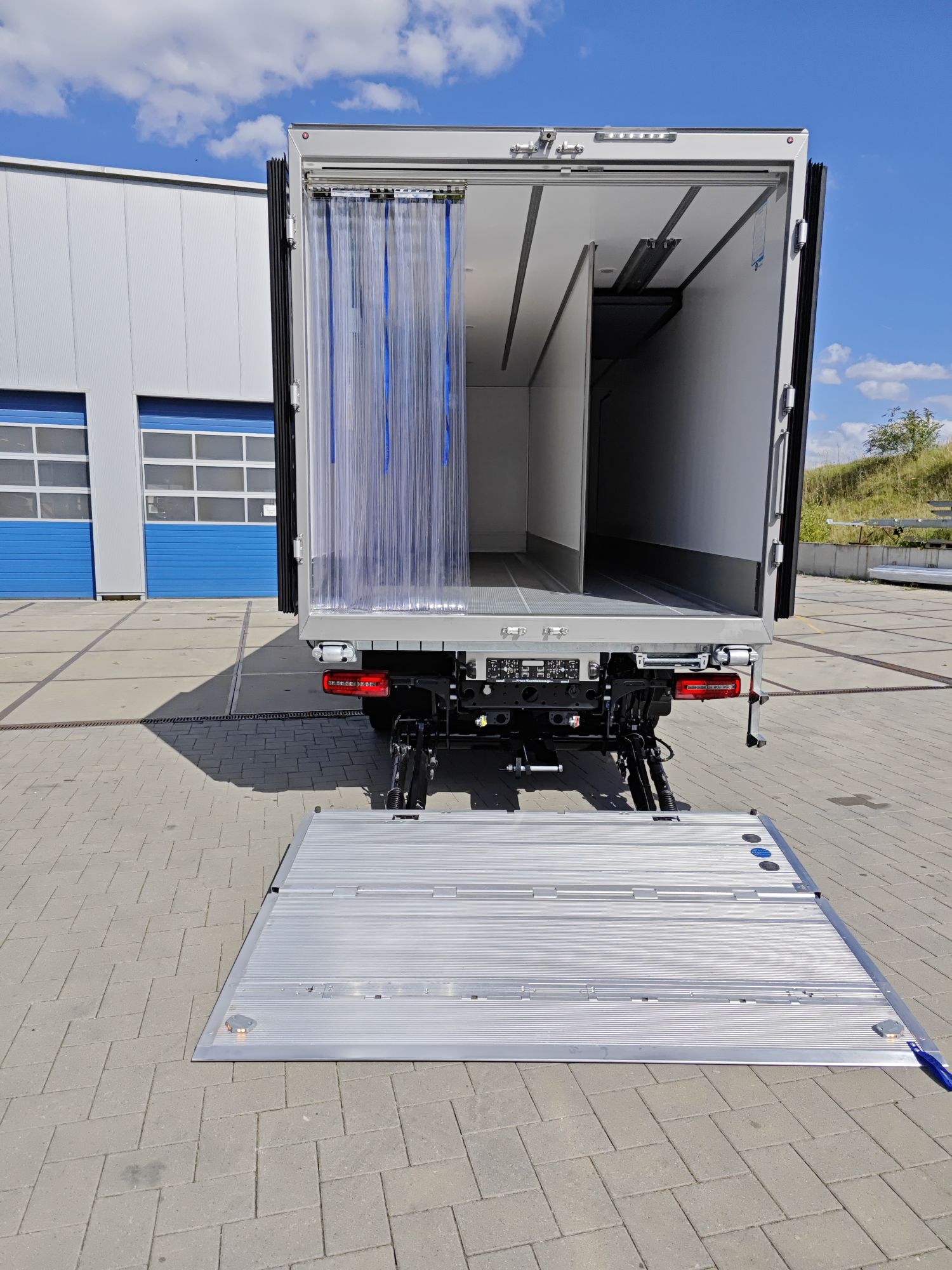 - Unterfahrbere Ladebordwand, dadurch Öffnung der Hecktüren auch ohne Bedienung der Ladebordwand möglich